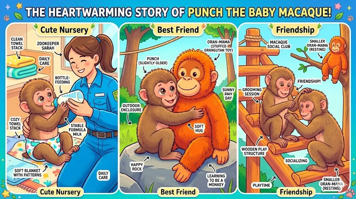 Read the heartwarming true story of Punch, a viral baby monkey in Japan who found comfort in a stuffed toy.
