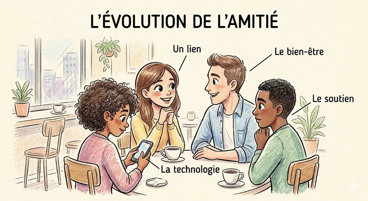 Découvrez comment l'amitié se forme, survit aux conflits et s'adapte à l'ère numérique dans ce texte complet de niveau B1.