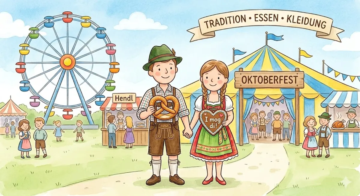 Lerne das Oktoberfest kennen! Entdecke Traditionen, Essen und Kleidung beim größten Volksfest der Welt in diesem einfachen A1 Text.