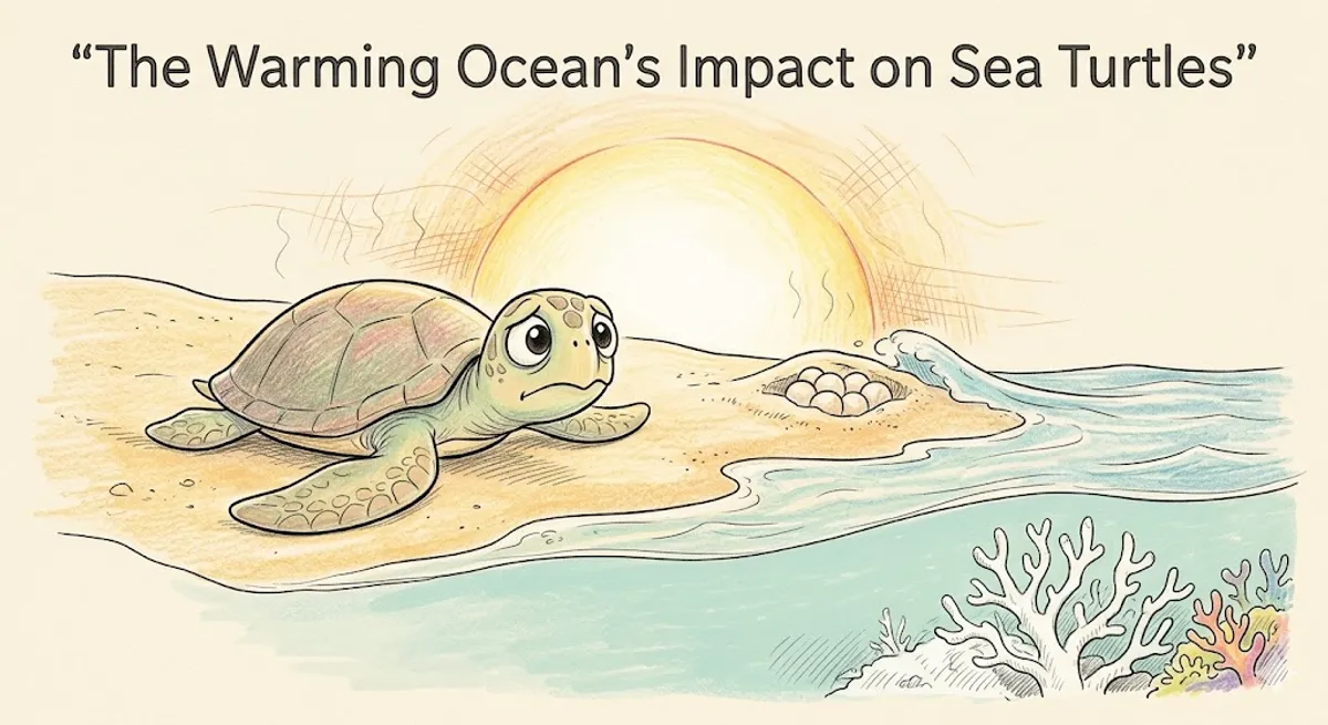Sea turtles are ancient ocean creatures that have lived on Earth for millions of years. However, today they face many dangers, and one of the biggest threats is climate change. Warming temperatures are causing serious problems for sea turtle populations around the world. Unlike many other animals, a sea turtle's gender is not determined by its DNA. Instead, it is decided by the temperature of the sand where the eggs are buried. If the sand is cool, the eggs will hatch as male turtles. If the sand is warm, the eggs will hatch as female turtles. Because global temperatures are rising, the sand on nesting beaches is getting much hotter. As a result, many more female turtles are being born than male turtles. On some beaches, almost all of the baby turtles are female. Scientists worry that without enough males, sea turtles will not be able to reproduce in the future. Another problem caused by warming temperatures is rising sea levels. When the ocean gets warmer, the water expands and ice melts at the poles. This causes the sea level to rise. Higher sea levels can destroy the beaches where sea turtles go to lay their eggs. If the beaches disappear under the water, the turtles will have nowhere to build their nests. Finally, higher temperatures affect the food that sea turtles eat. Many sea turtles eat coral reefs and the small animals that live there. However, warm water causes coral bleaching, which kills the reefs. When the reefs die, sea turtles lose their homes and their food sources. Protecting sea turtles is very important. To save them, we need to reduce the pollution that causes climate change. We also need to protect their nesting beaches and keep the oceans clean. If we work together, we can help these amazing animals survive for many more years.